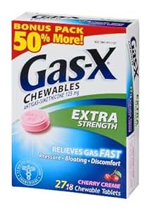 Gas x extra strength chewables gas-x extra strength chewable tablets - cherry creme * gas-x extra strength chewable tablets - peppermint creme * simethicone, 125 mg * simethicone, formulated product medicinal product. ... Content Retrieval